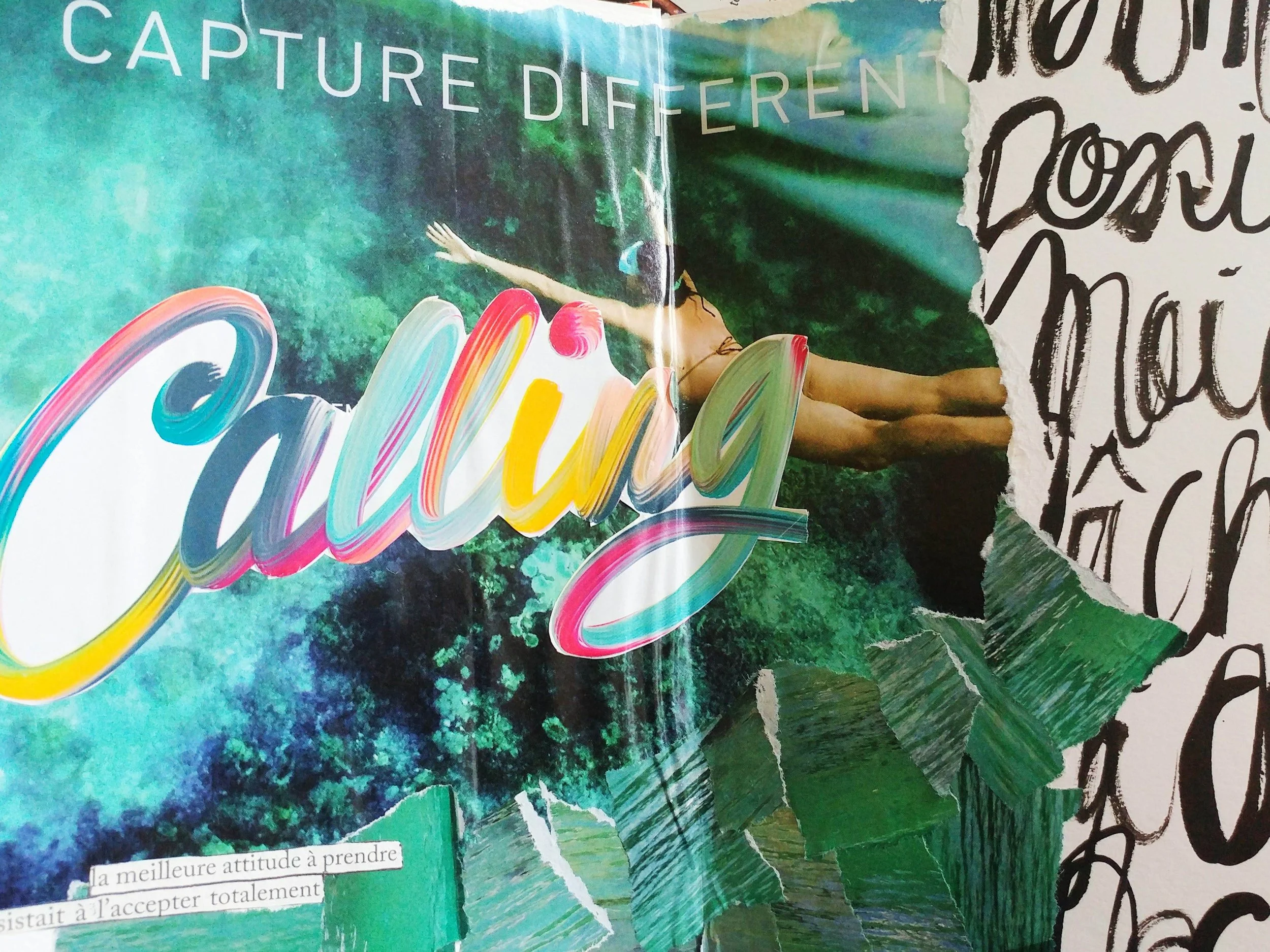 Sources de mots à découper: vieux magazines, livres, journaux, impressions — tout ce qui contient des mots qui pourraient résonner avec vous