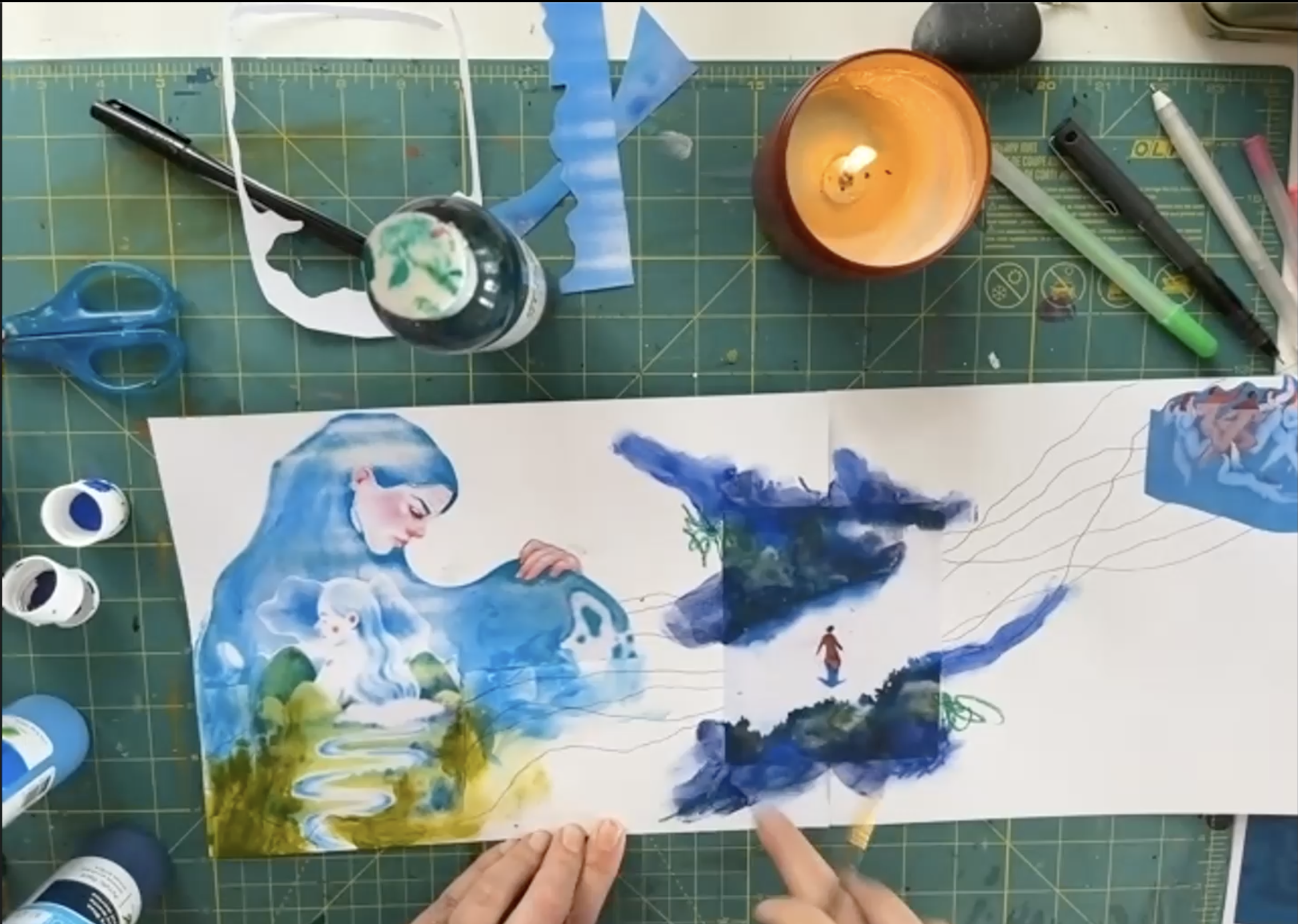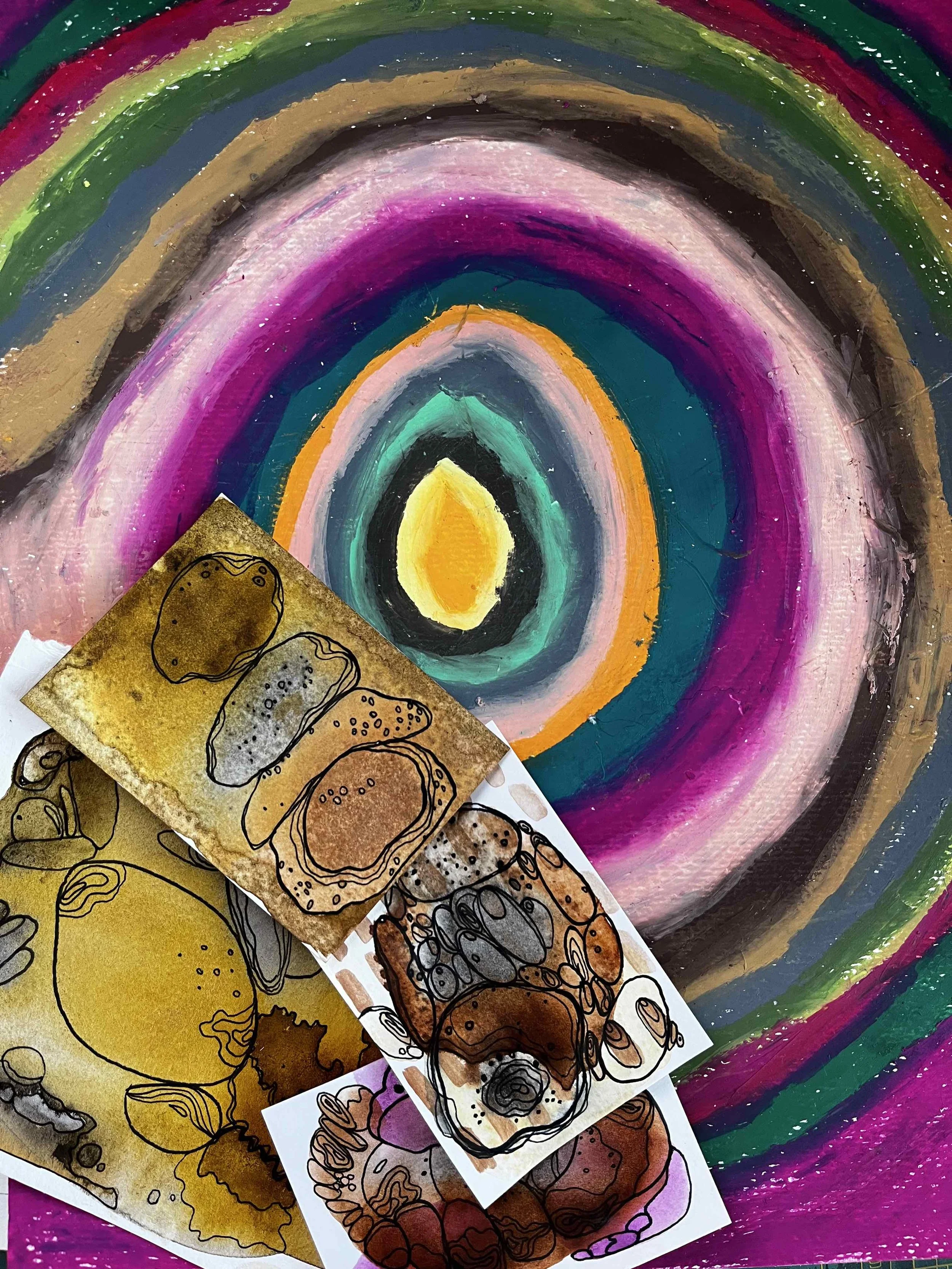 En utilisant la peinture à l'eau, l'encre acrylique, les pastels, le dessin sans dessiner et le collage, nous découvrirons comment ces médiums peuvent être des outils puissants pour s’offrir en cadeau le flow.